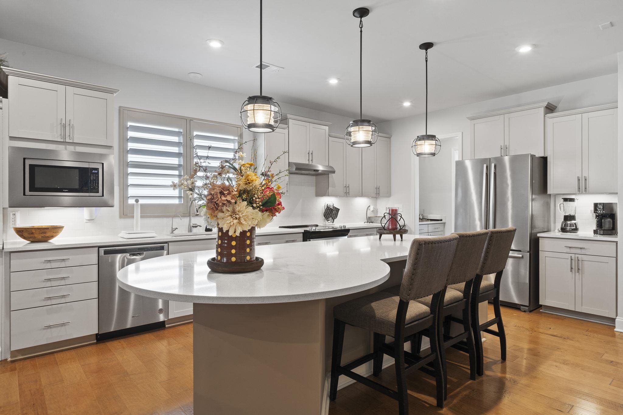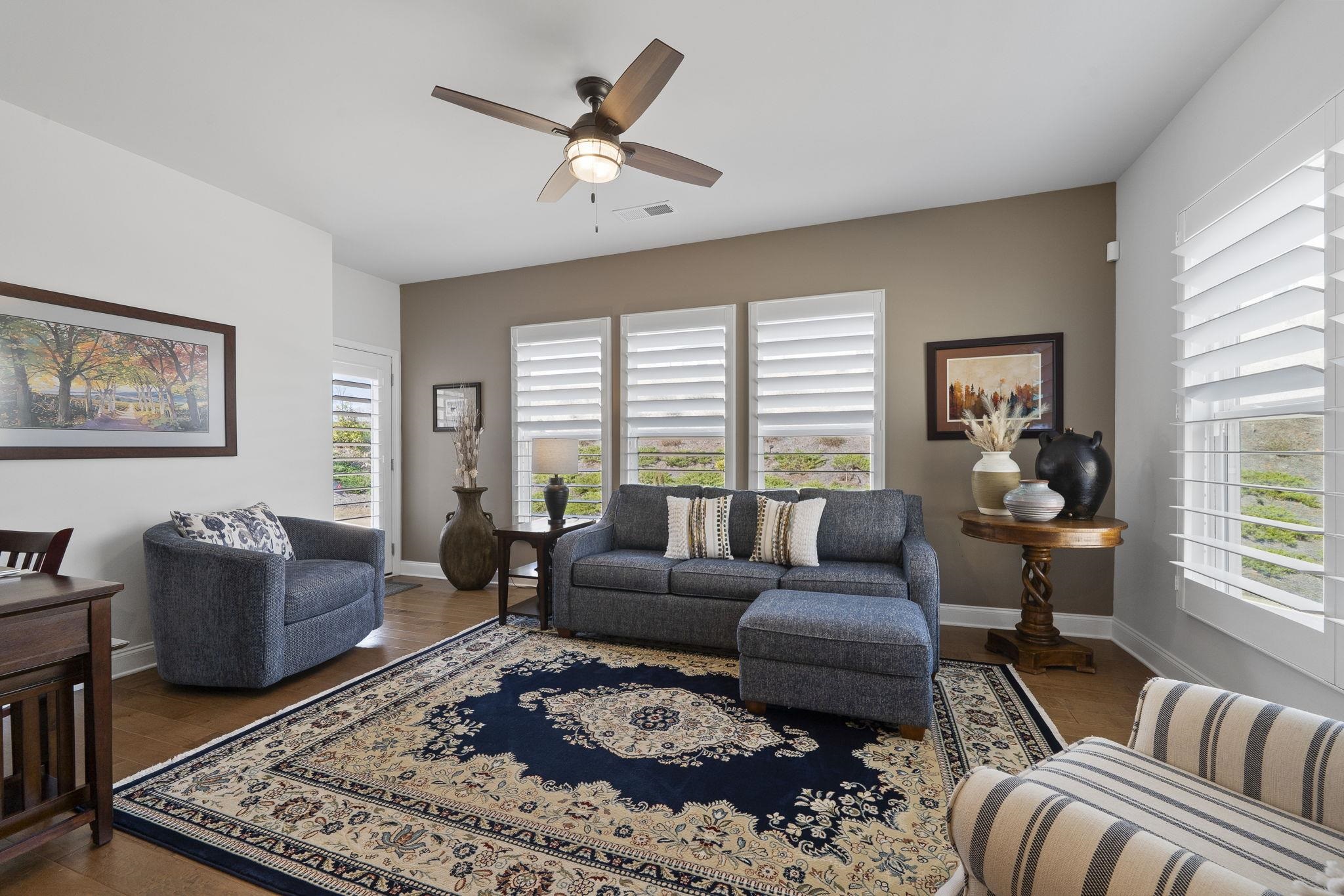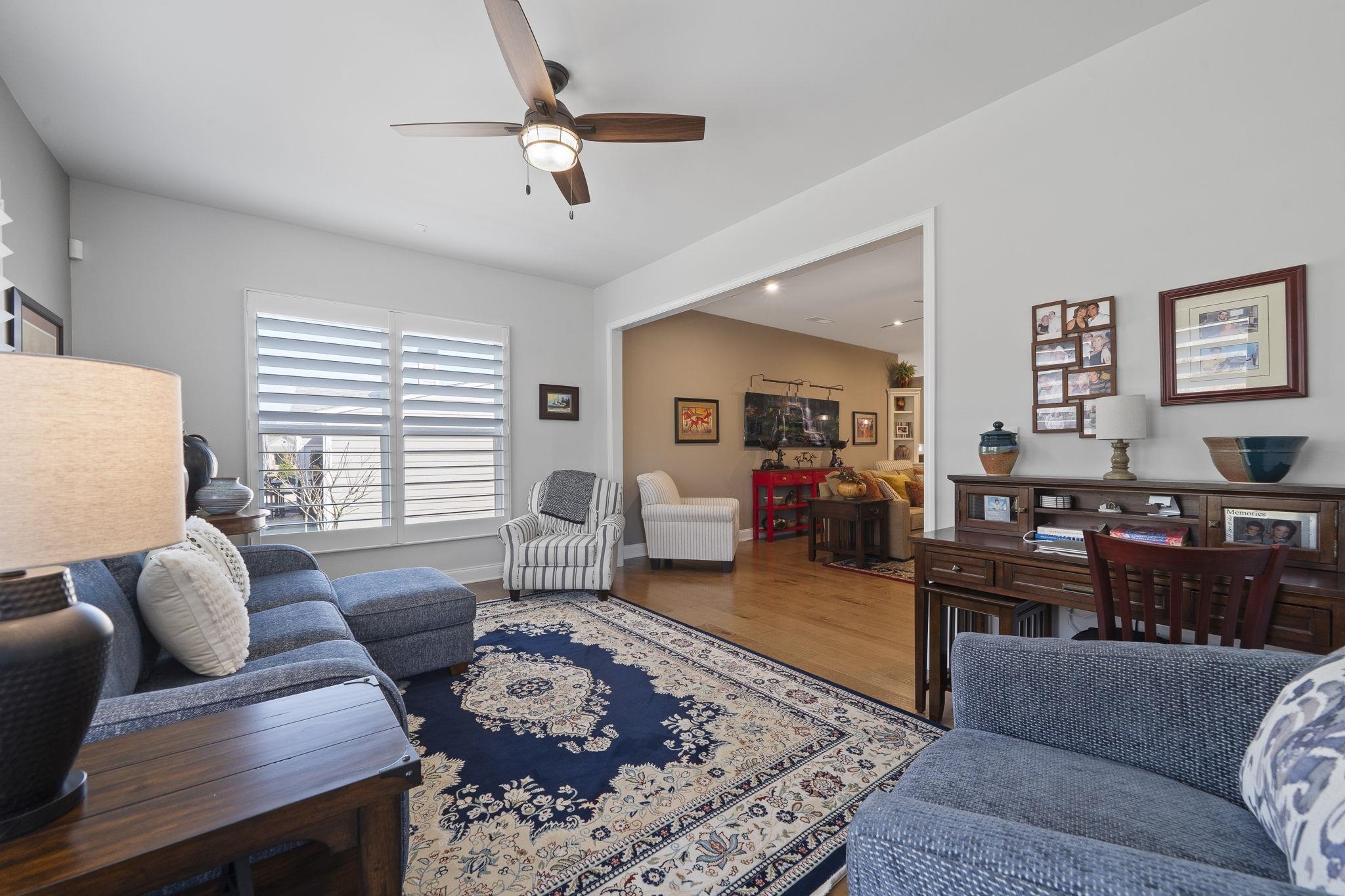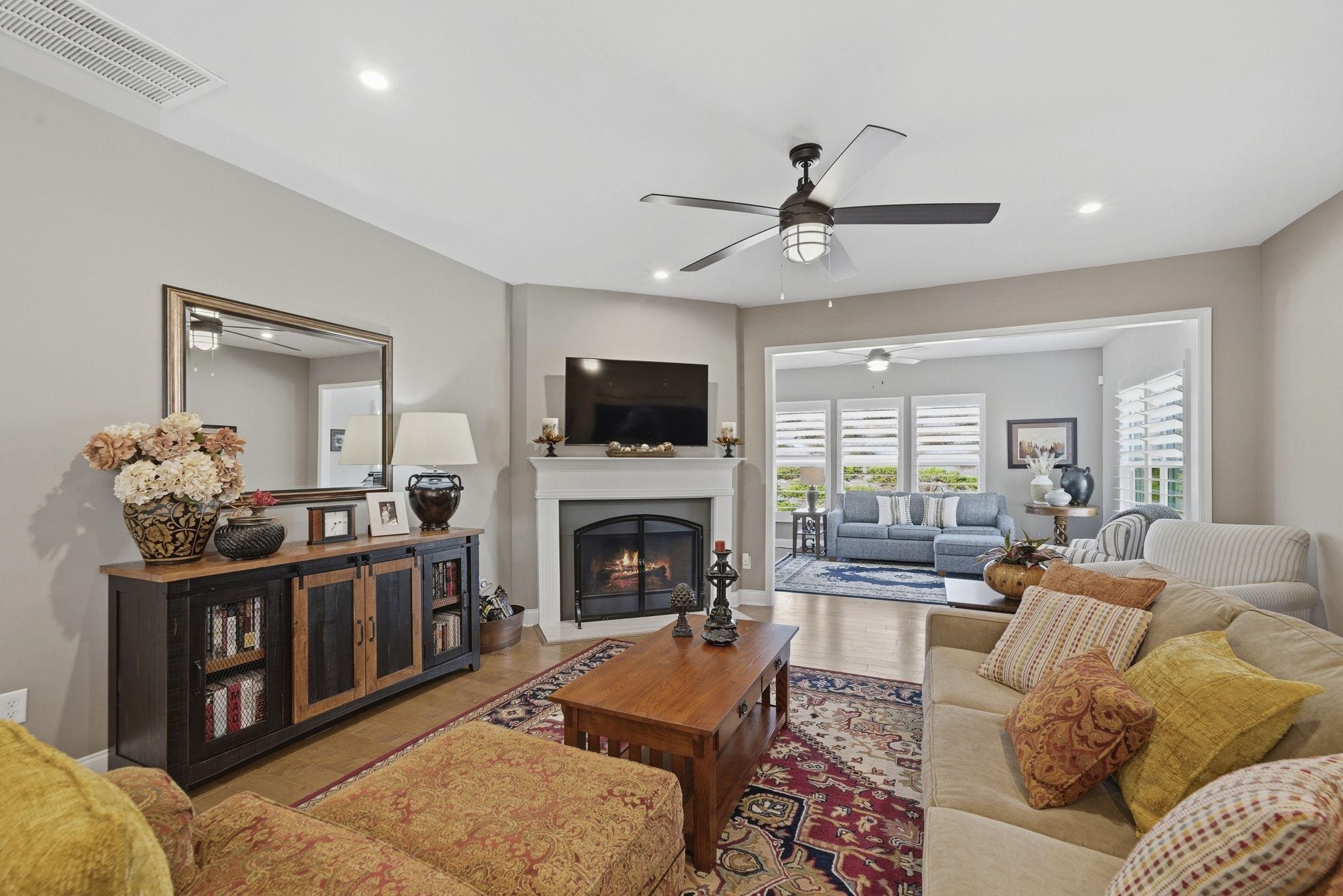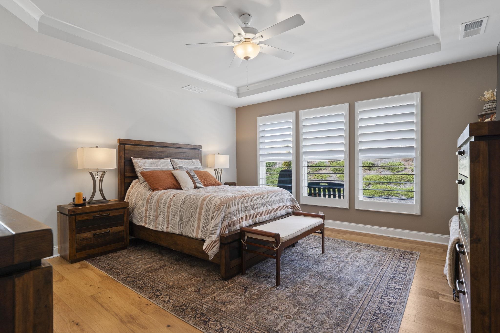 Throughout the home, custom plantation shutters provide a timeless look while enhancing privacy and light control. Hardwood flooring runs through the main living areas and has been extended into all bedrooms, creating a seamless and upgraded feel throughout the home.