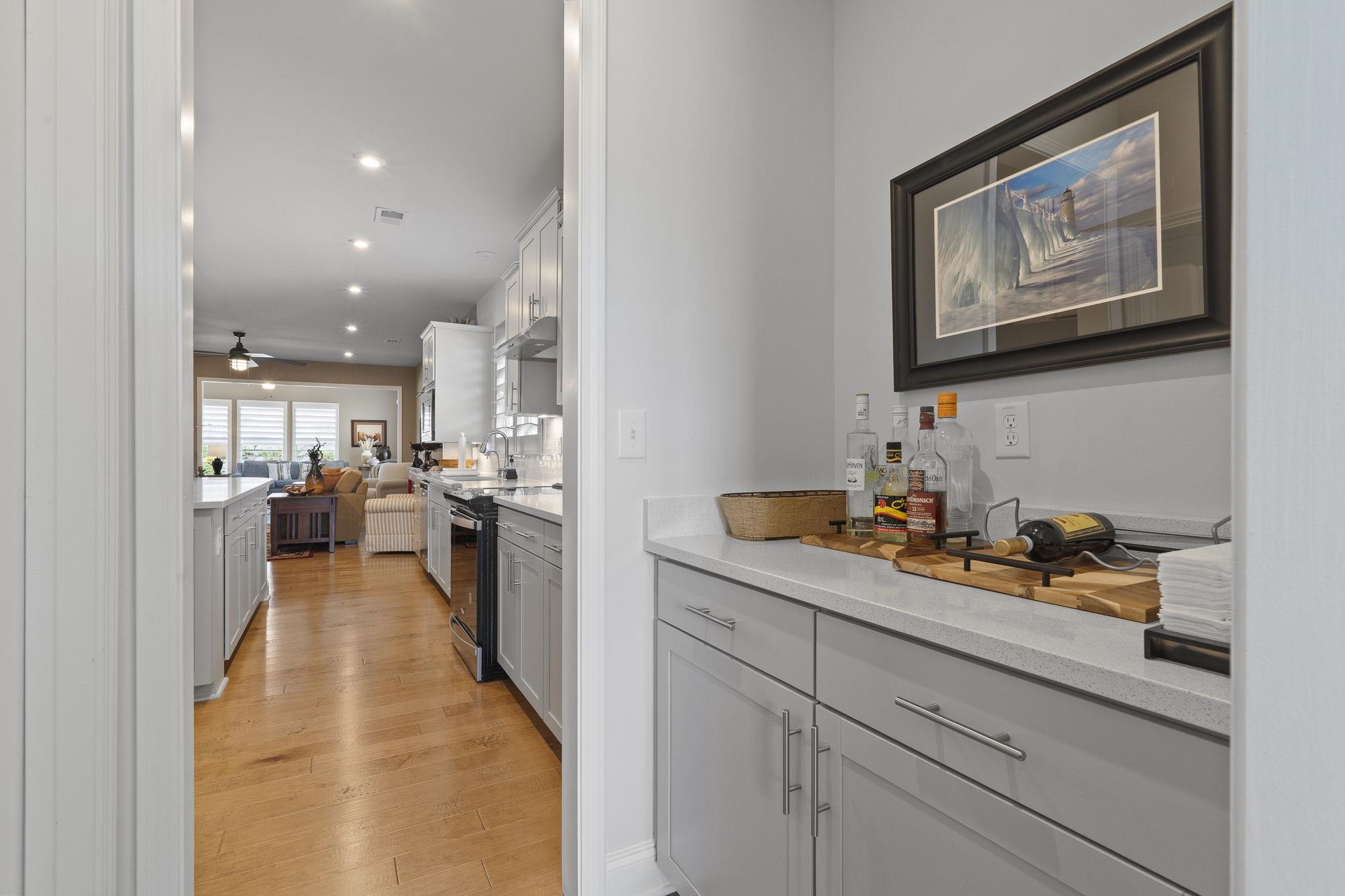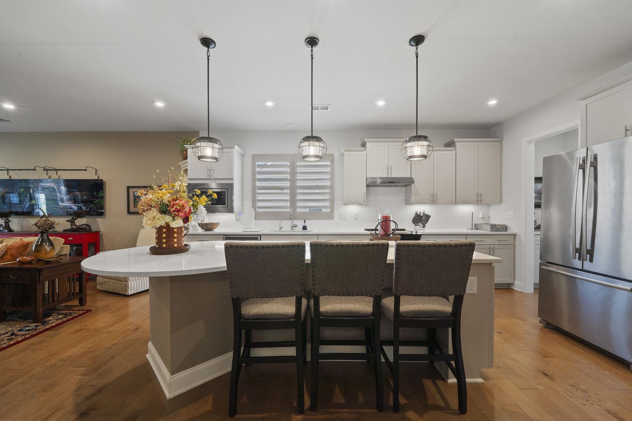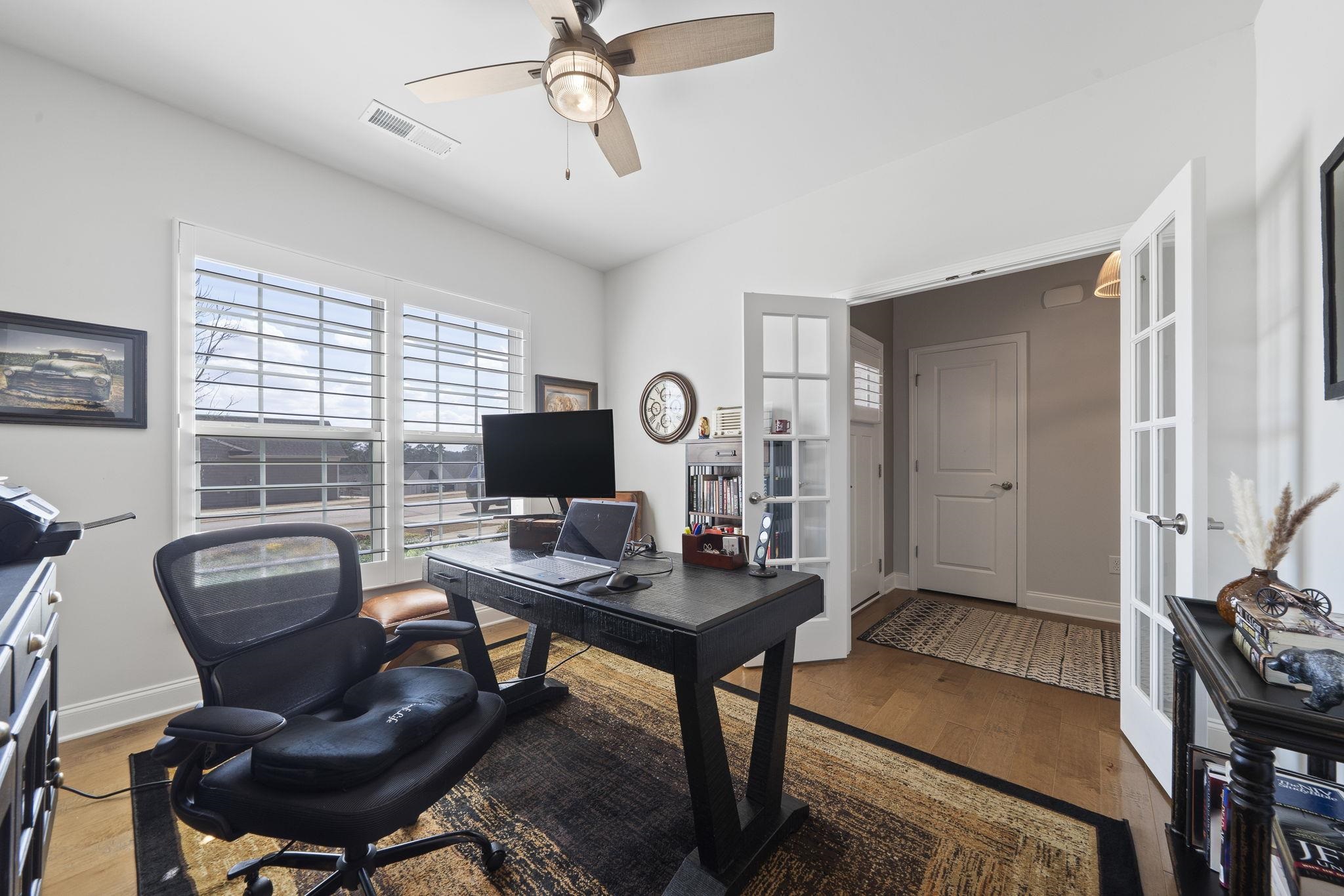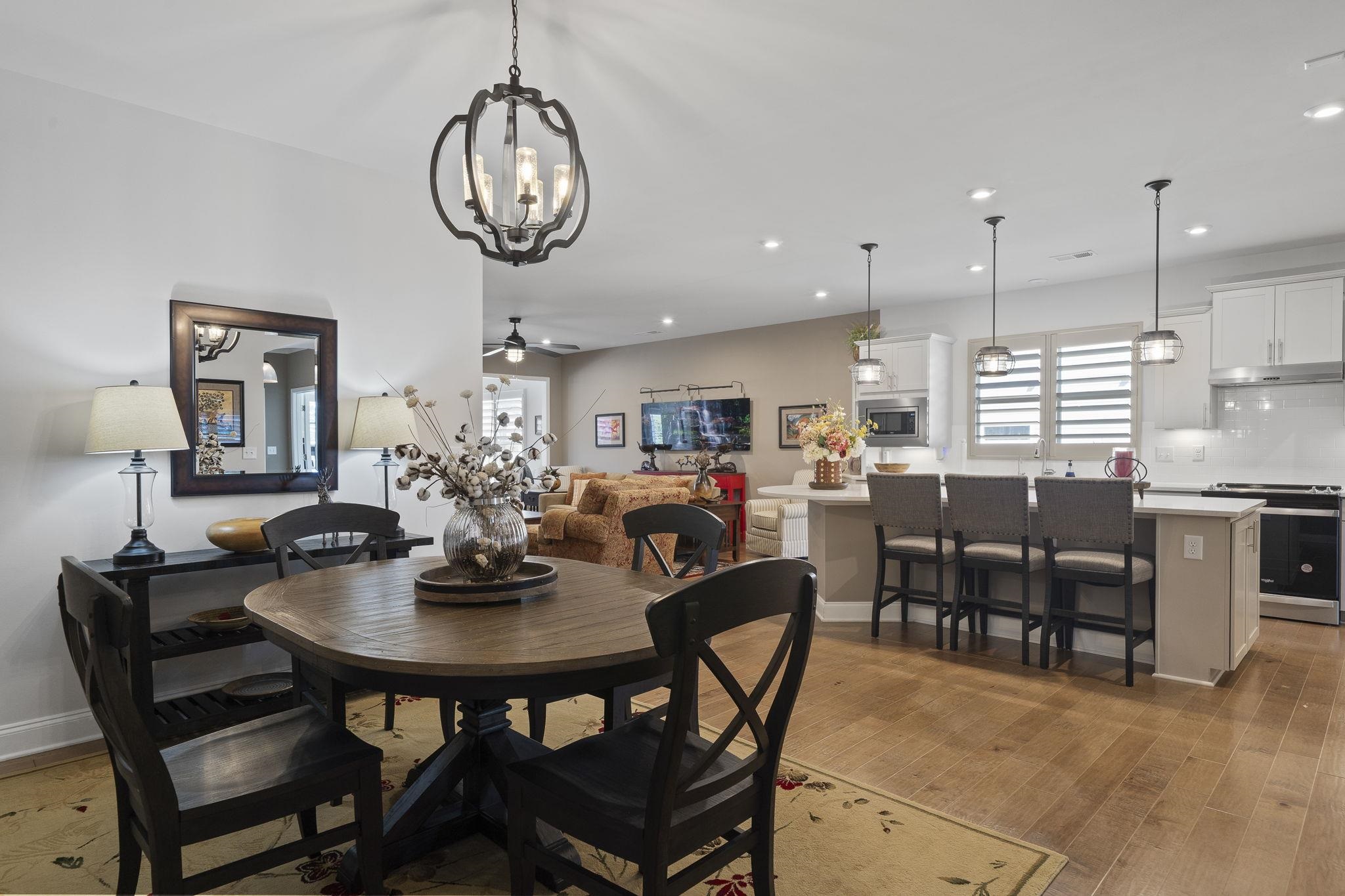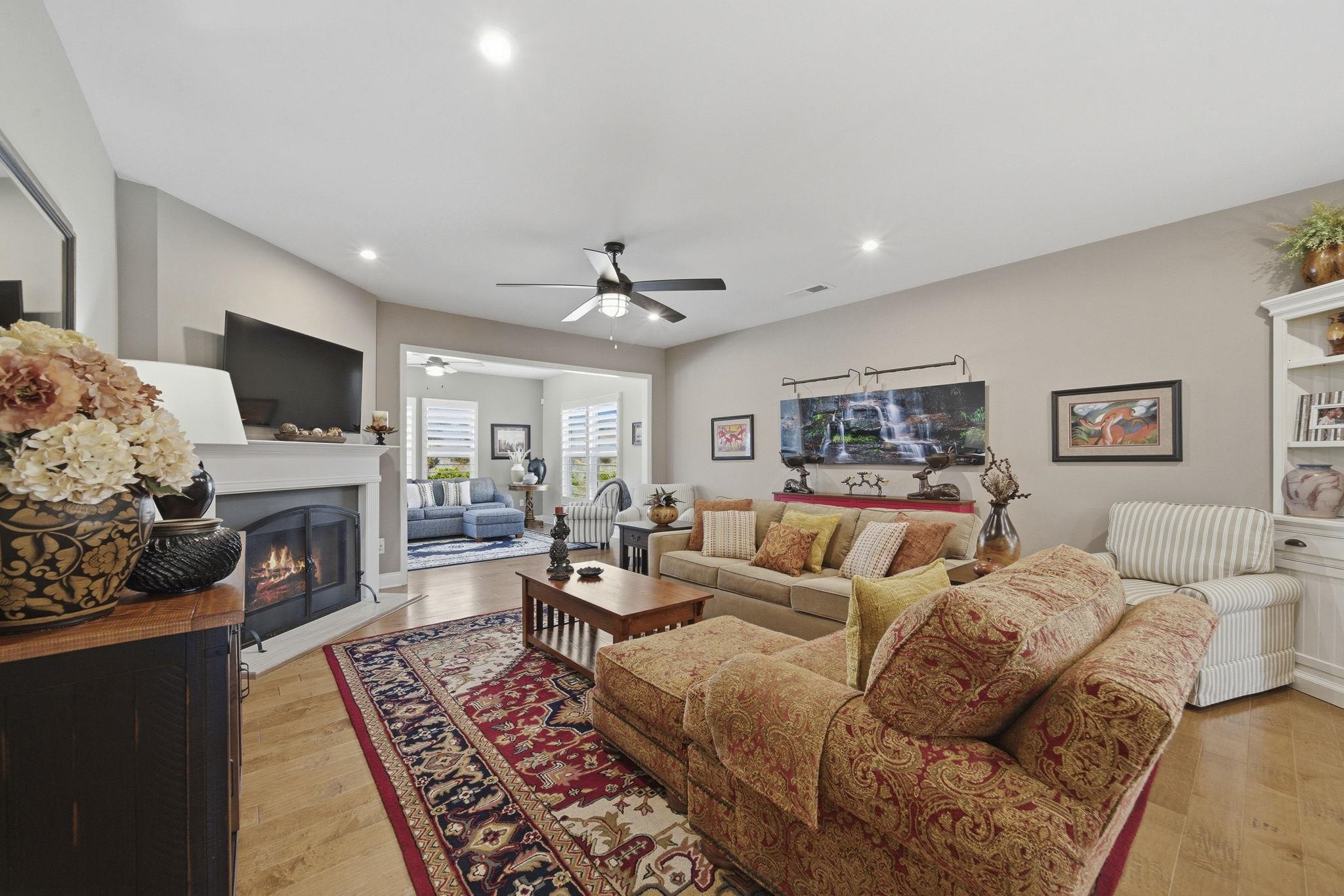 Throughout the home, custom plantation shutters provide a timeless look while enhancing privacy and light control. Hardwood flooring runs through the main living areas and has been extended into all bedrooms, creating a seamless and upgraded feel throughout the home.