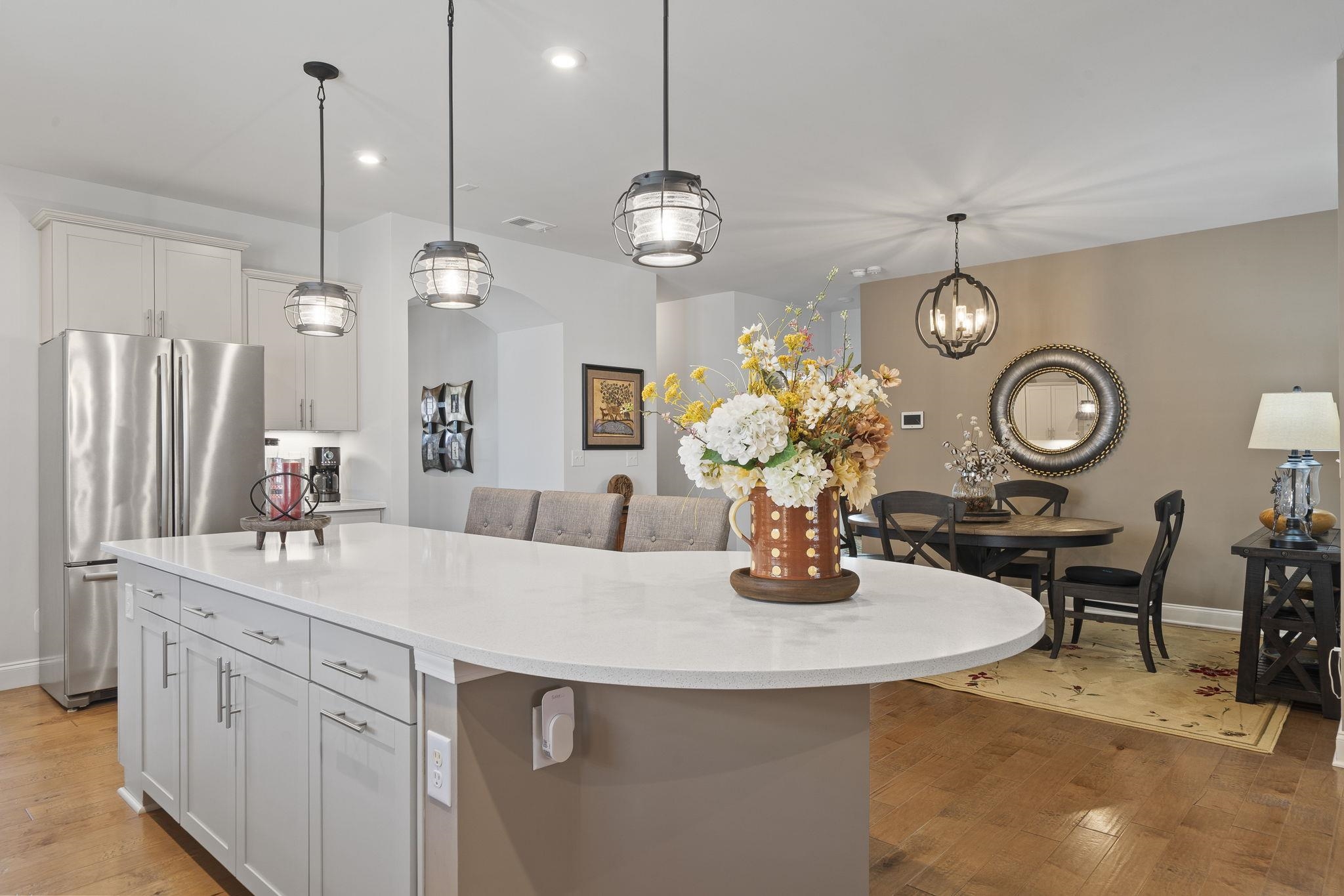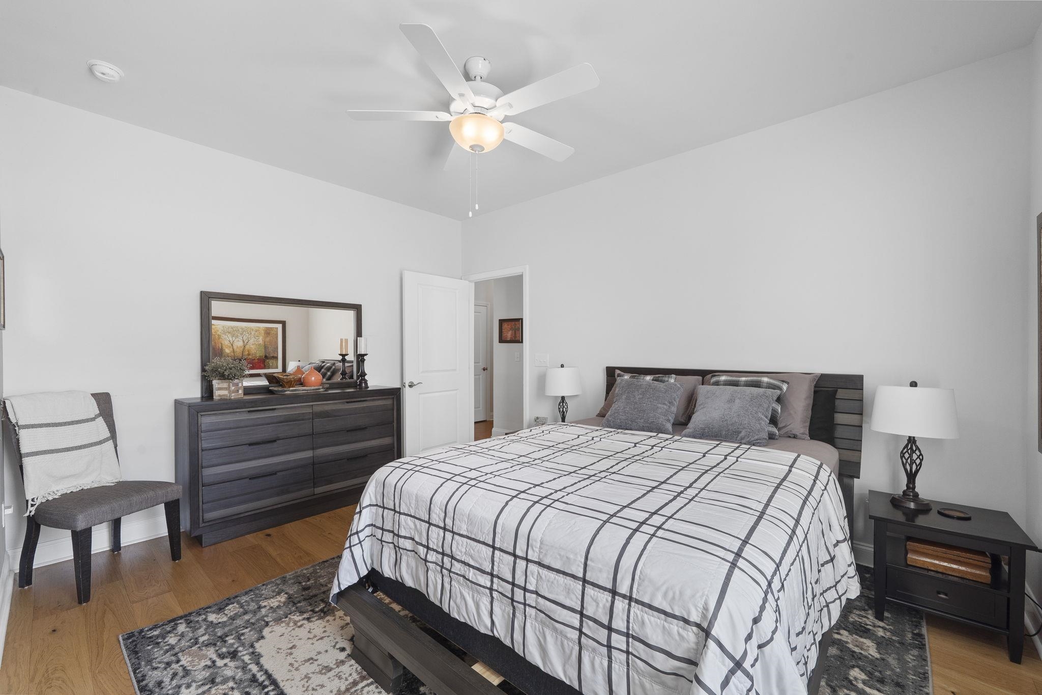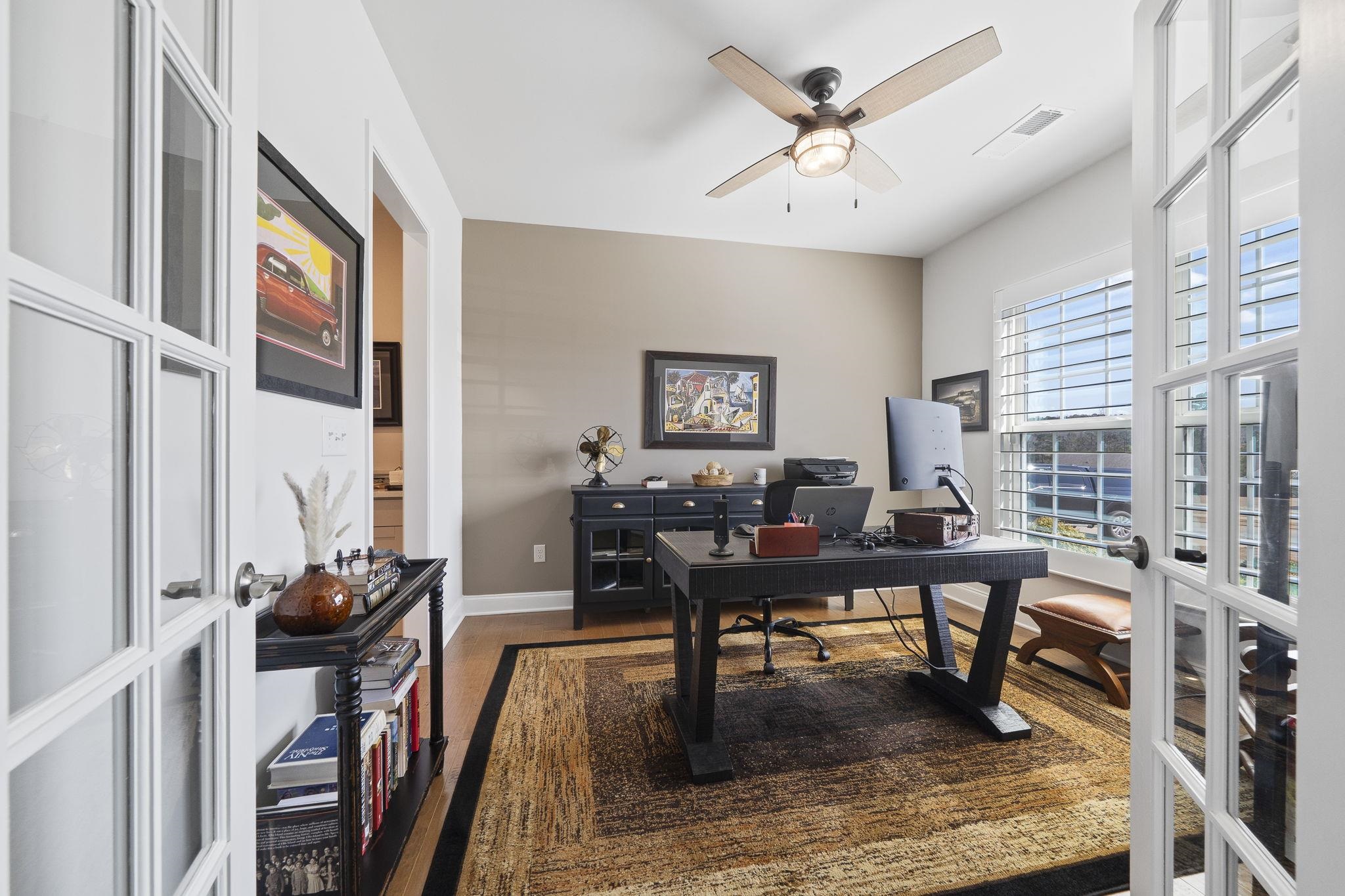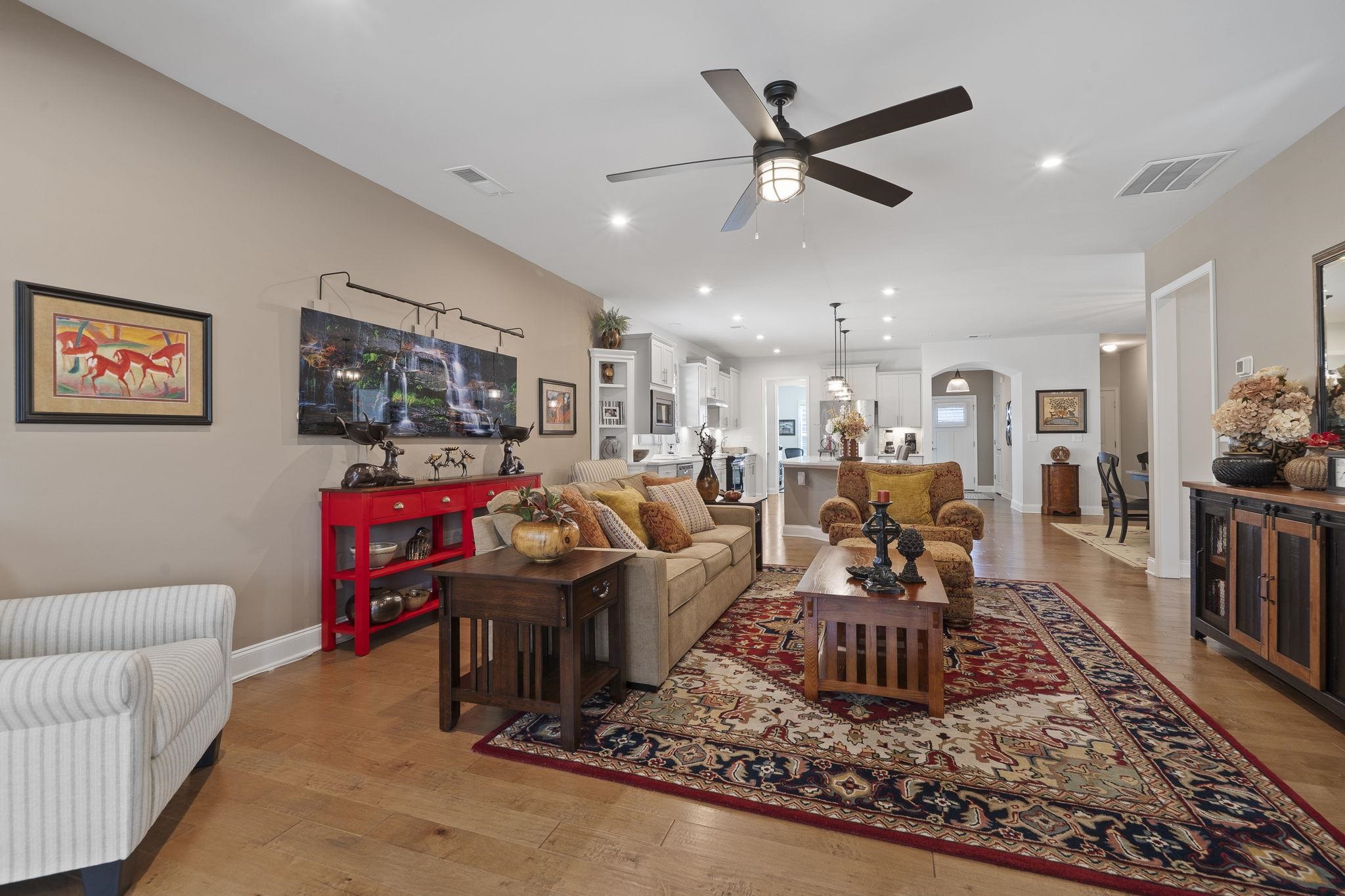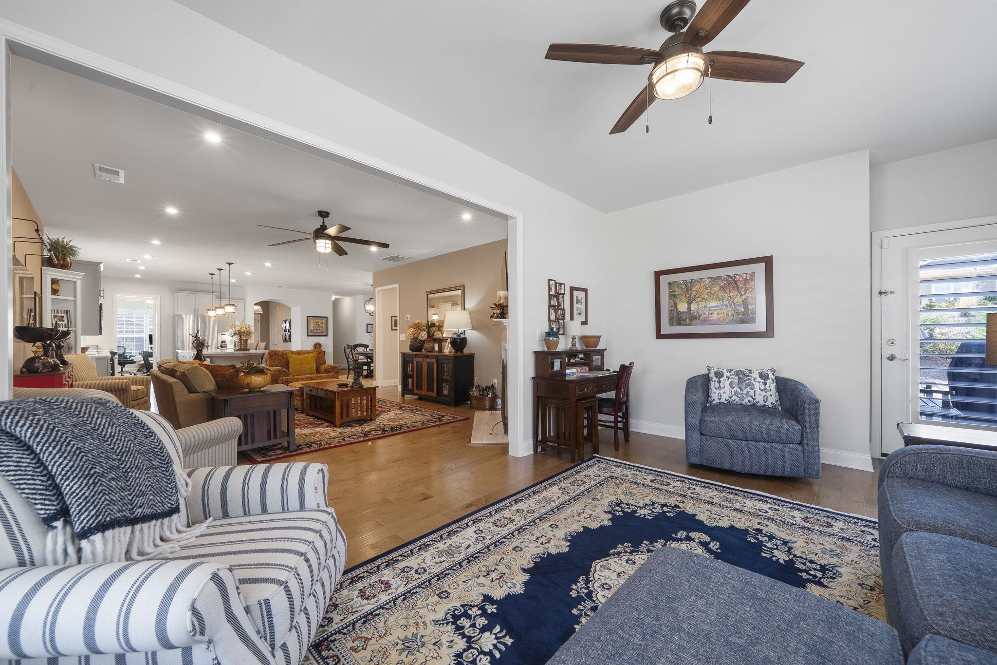Throughout the home, custom plantation shutters provide a timeless look while enhancing privacy and light control. Hardwood flooring runs through the main living areas and has been extended into all bedrooms, creating a seamless and upgraded feel throughout the home.
