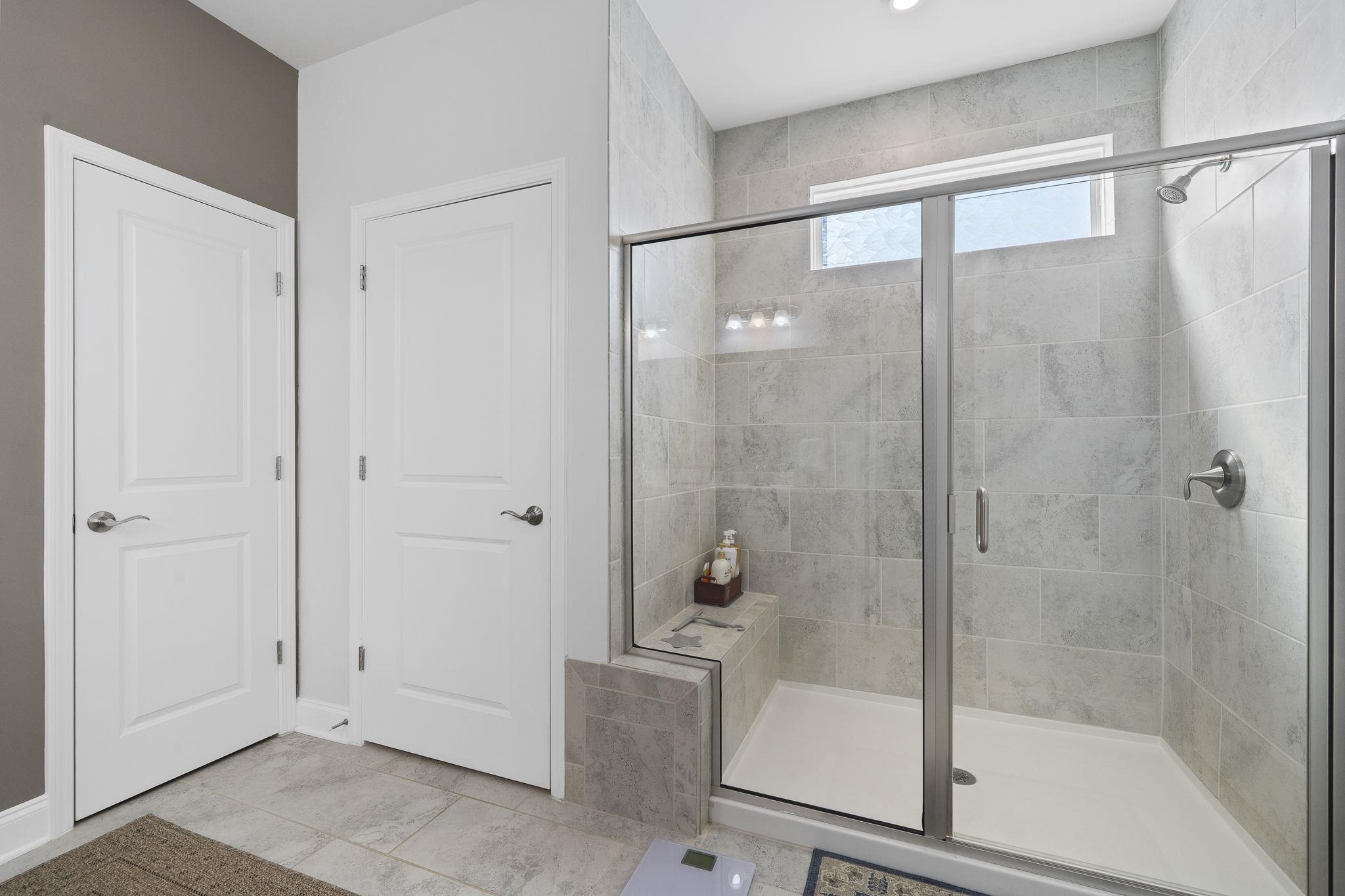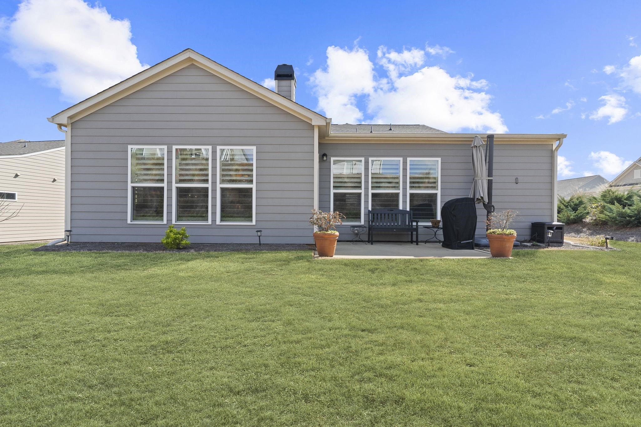 The primary suite is located on the main level and includes a spacious walk-in closet and a large walk-in shower. Two additional bedrooms provide comfortable accommodations for guests or flexible space for hobbies or additional workspace.