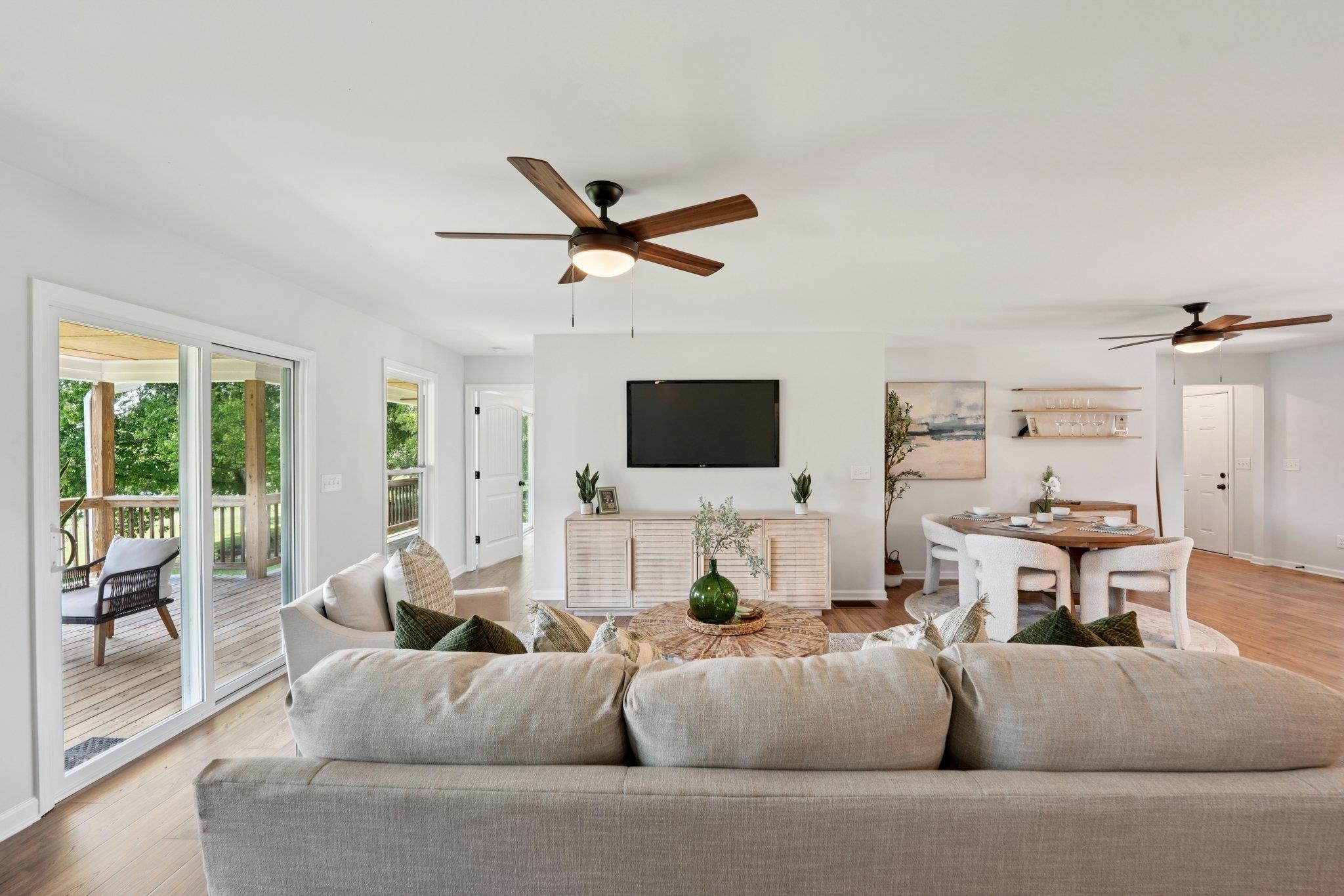 Lake Oconee lakefront home for sale in Greensboro, Georgia — this like-new 3-bedroom, 2-bath ranch at 1051 Twin Rivers Road offers stunning main-lake views, a private max dock, and over 2 acres of property with room to expand. Built in 2022, the home features an open-concept layout with hardwood and tile floors, French doors to a covered deck, and a bright living area designed for lakeside living.