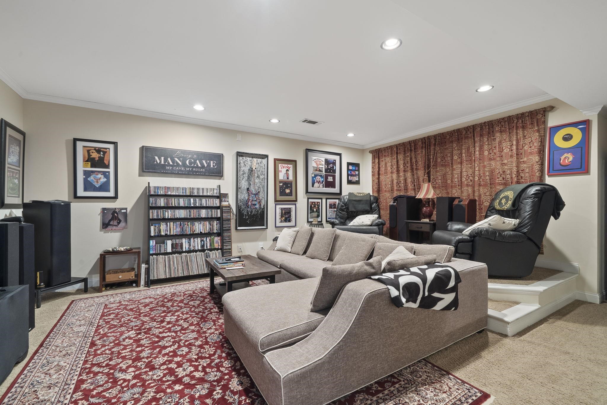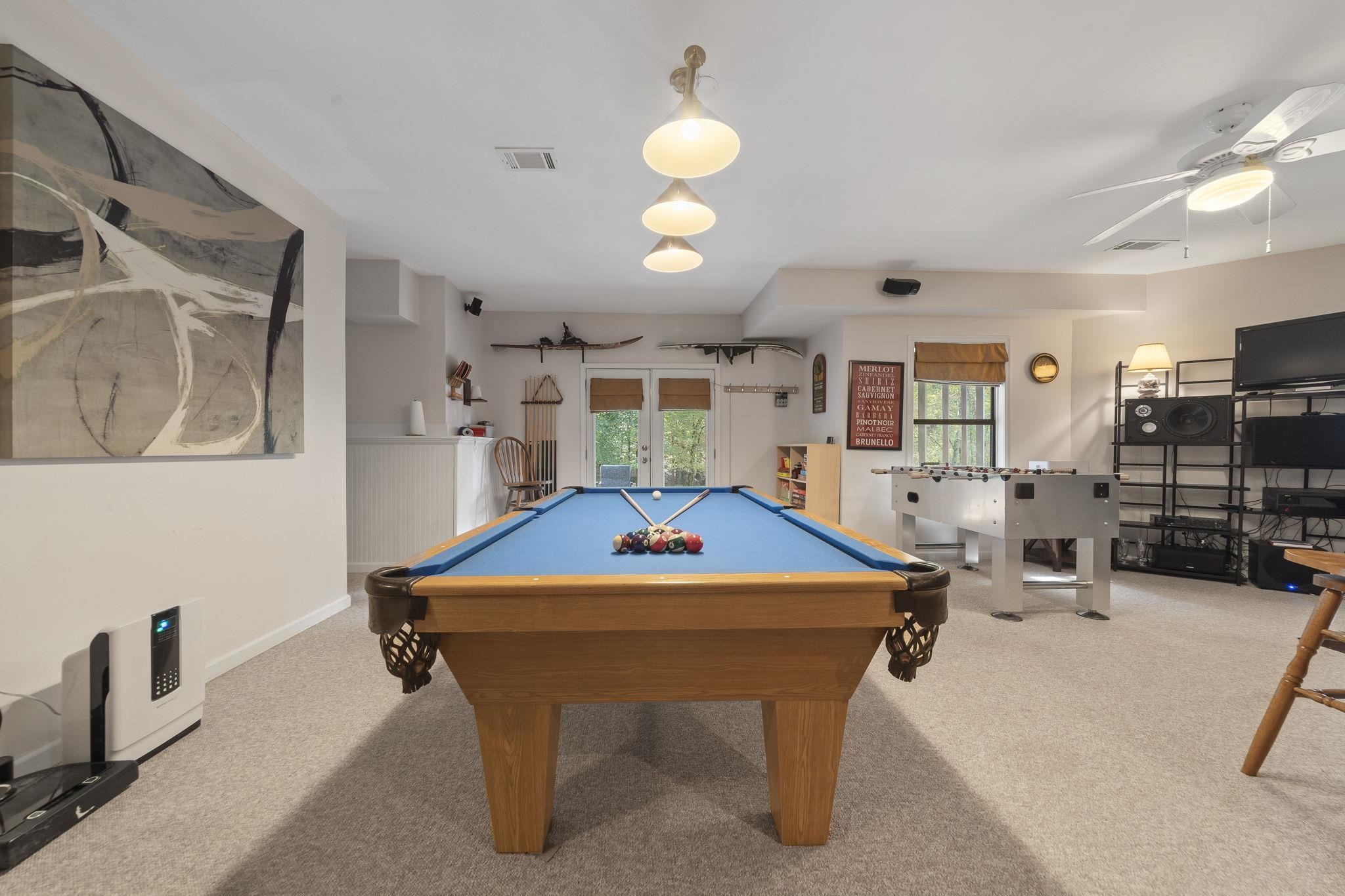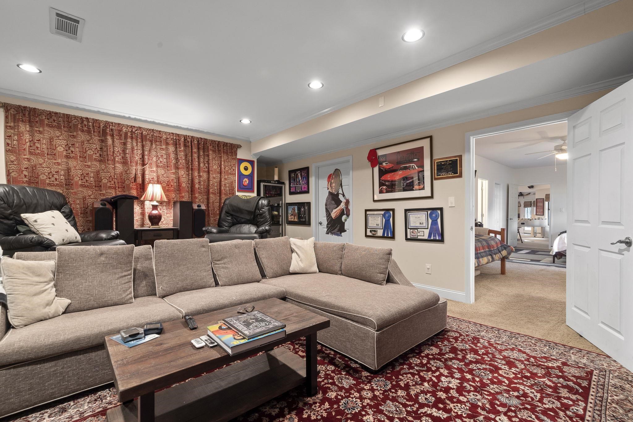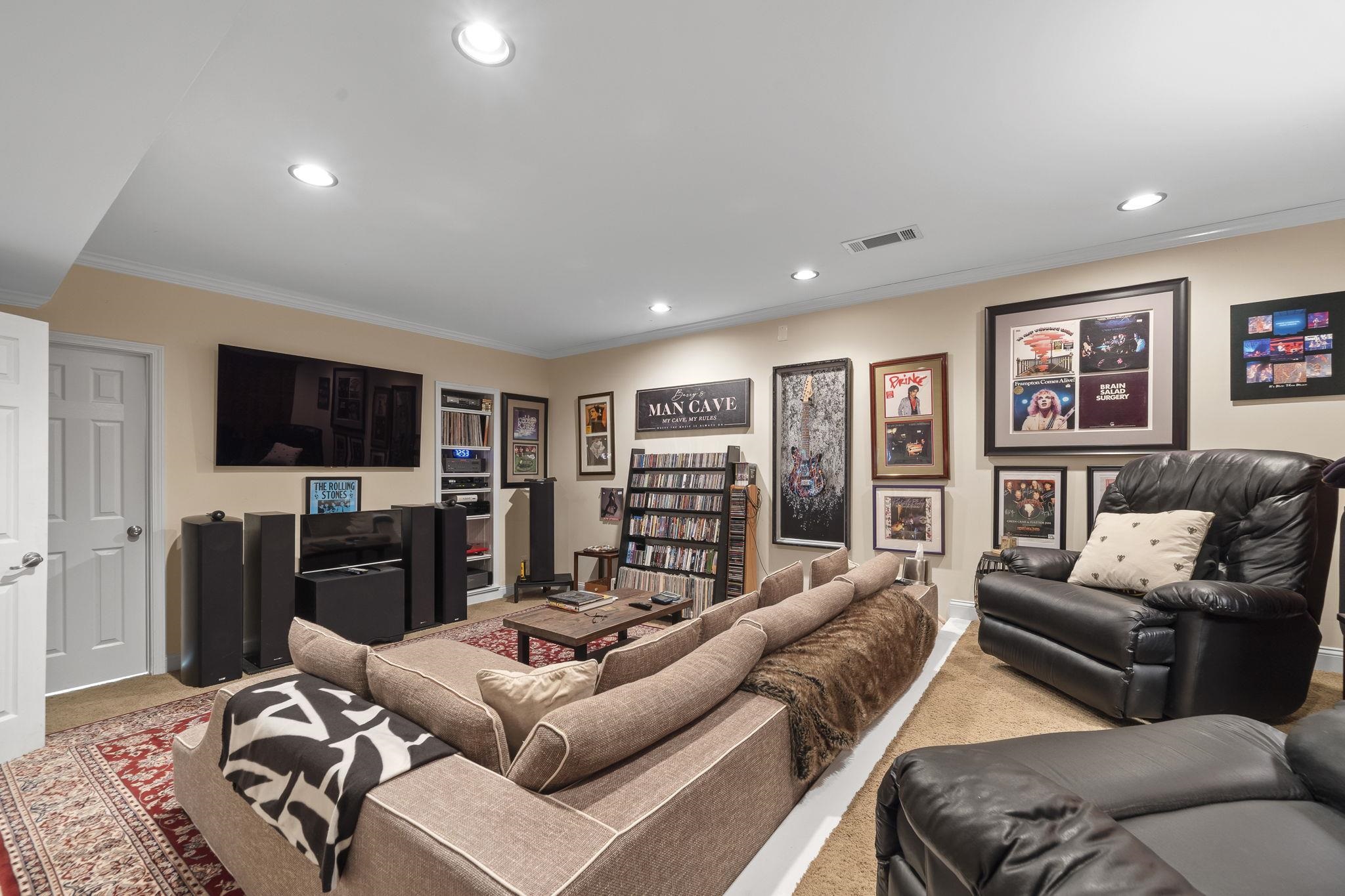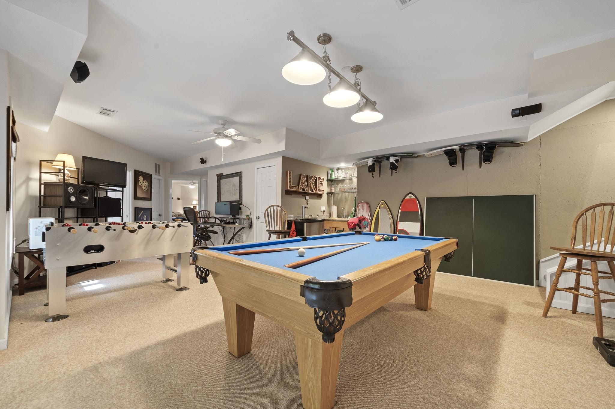 The terrace level includes a home theater, game room, wet bar, and direct access to the lake. Recent updates include new flooring, refinished baths, and a whole-home audio system wired for 62 speakers.